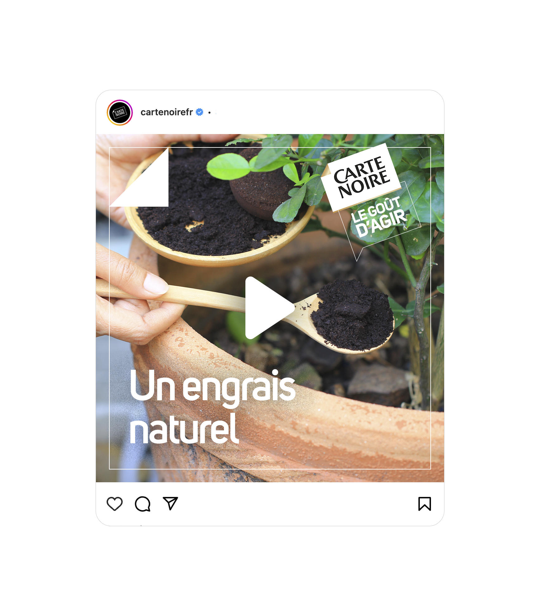 FR / Pour promouvoir et communiquer sur la campagne, des posts tutoriels sont créés sur les plateformes de médias sociaux. Des influenceurs sont sollicités pour présenter les différentes façons et applications d'utiliser le marc de café.
