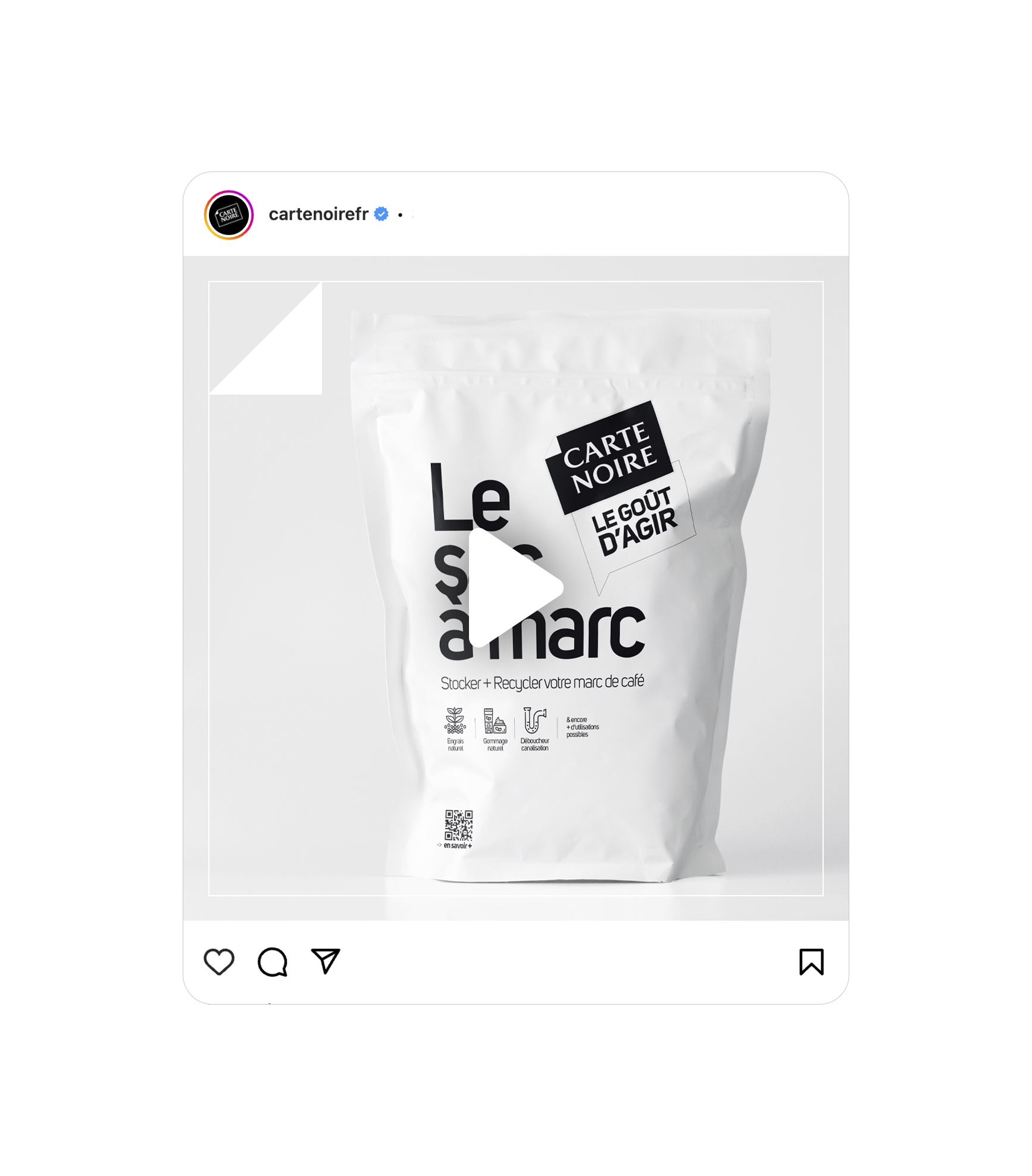 EN / Carte Noire introduces the Coffee Grounds Bag to encourage its consumers to recycle their own coffee grounds. This bag, made of recycled polypropylene, will be distributed in stores to empower those who have a taste for action. Bring the CSR campaign to life through a conversation: "What do you do with your coffee grounds?" Provide an educational and collaborative angle to learn how to reduce waste by using it cleverly.