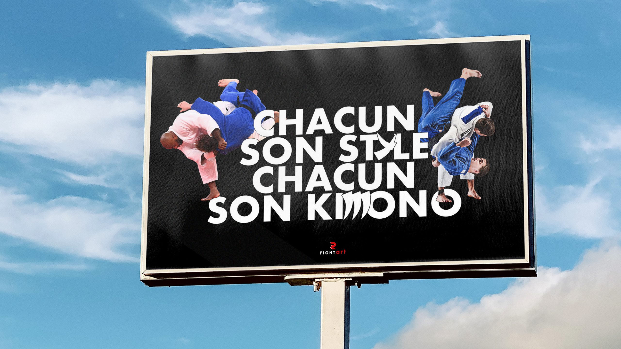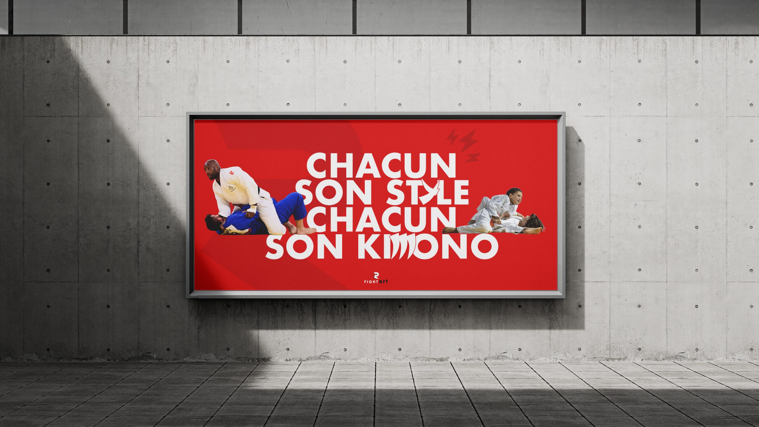 En : The Fightart brand has grown to become one of the leading brands in martial arts equipment. After testing, experiencing, and sweating with numerous kimonos for over three decades, the creators of Fightart wanted to immerse professional athletes, amateurs, and enthusiasts in a new equipment experience, enabling them to pursue their ultimate goal: sports performance. This evolution requires the brand to evolve as well. Create the brand identity and associated branding, based on an existing logo.