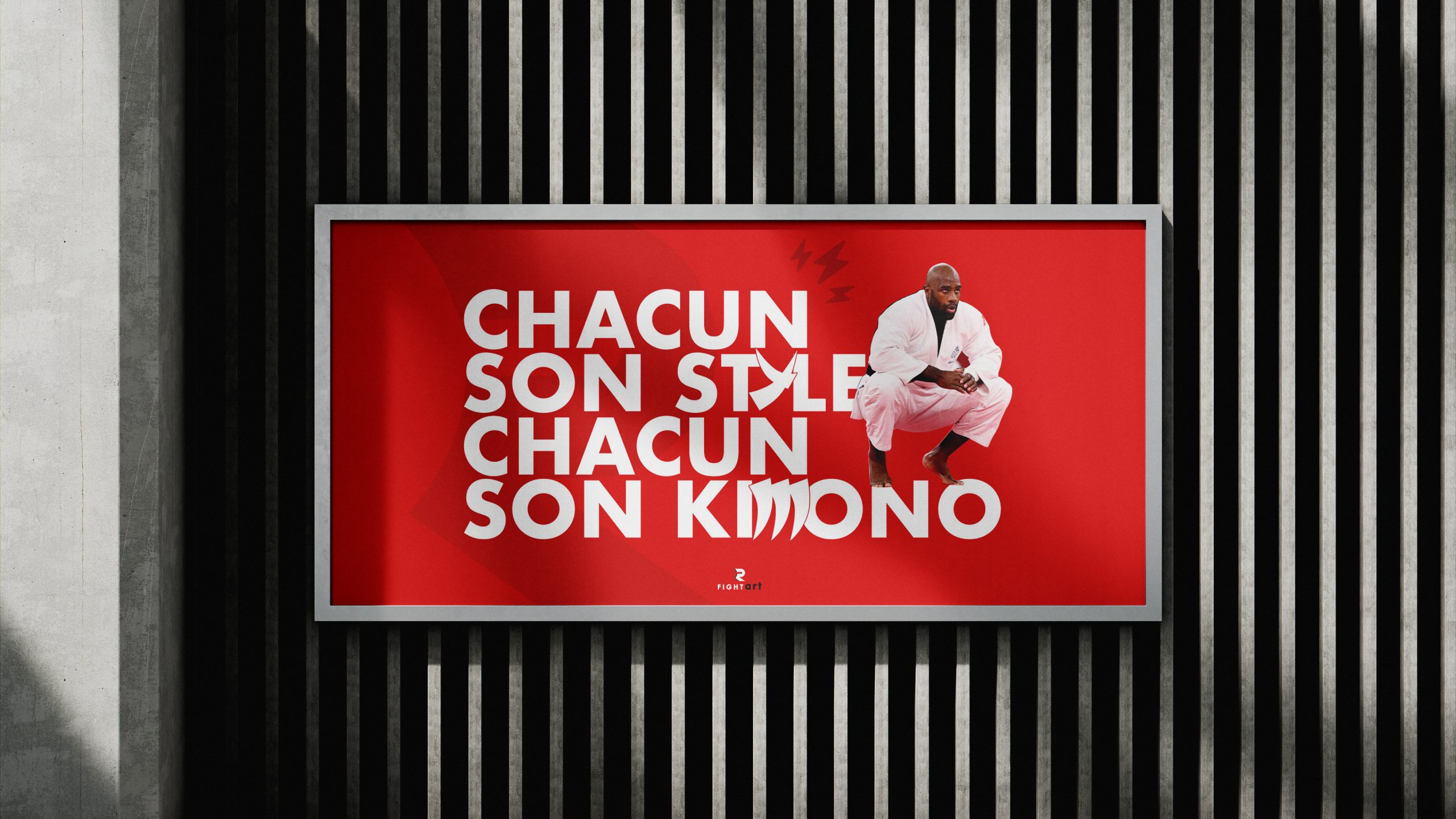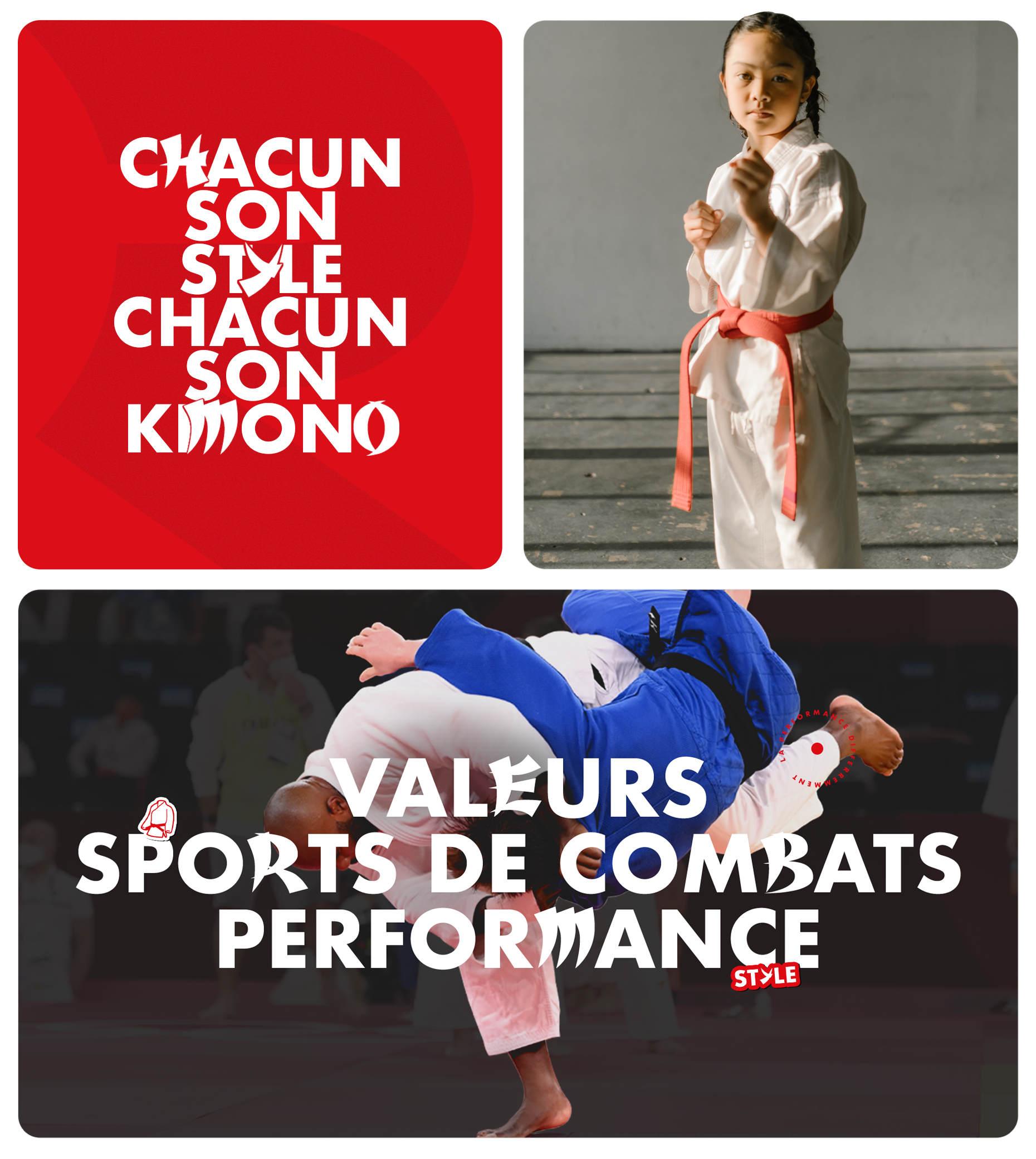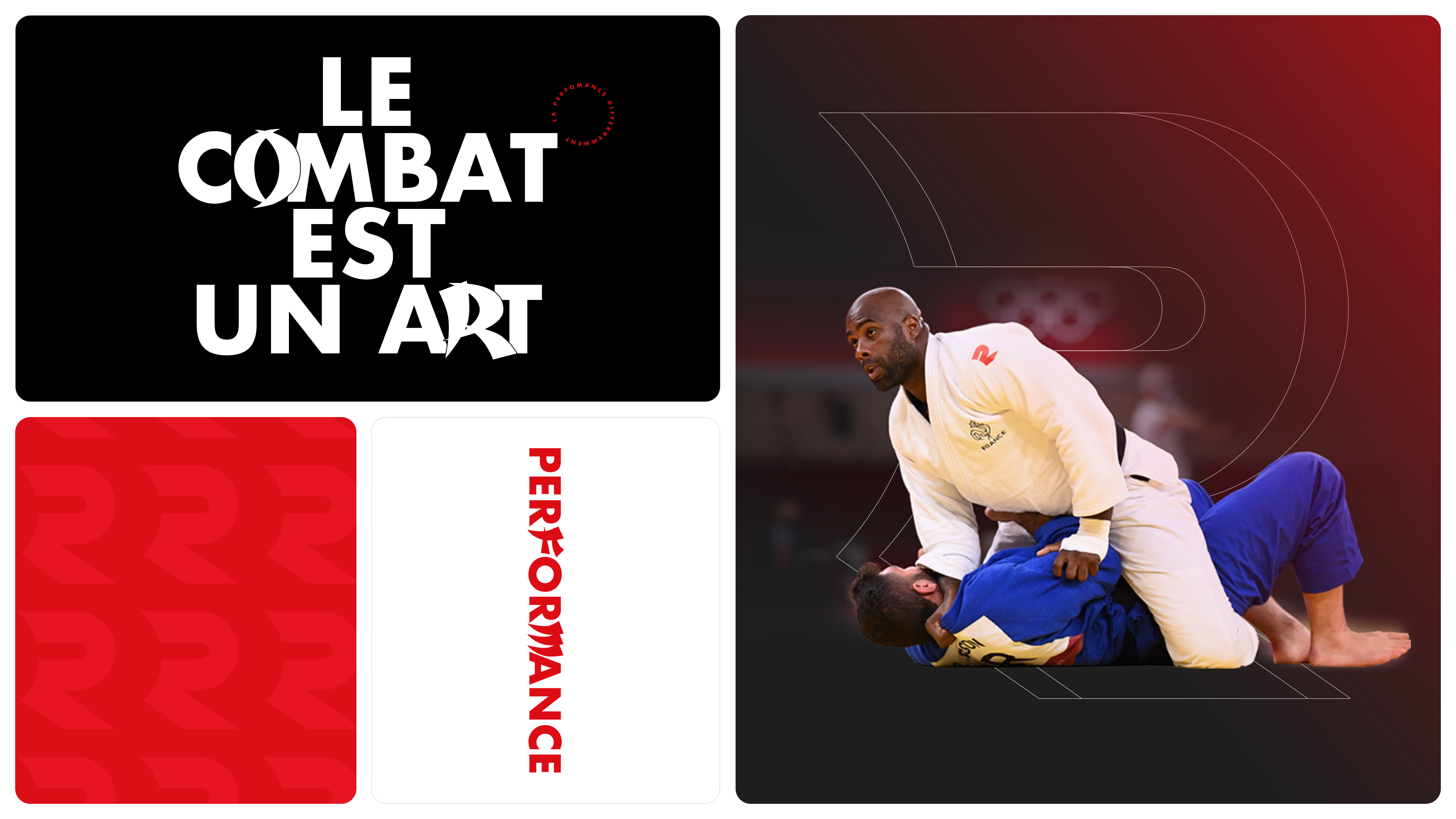 En : To create this brand identity, I relied on an existing typography, a prominent logo, and the universe of martial arts. I developed a typographic system that allows flexibility in adapting to different media. I kept the logo's sans-serif typography and combined it with a typography that evokes the world of martial arts because combat is an art.